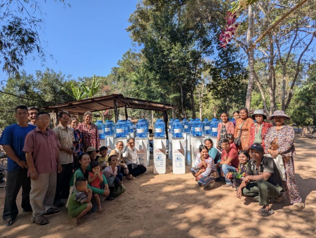 Areak Svay Village の方々と、粂内君が寄贈した浄水器