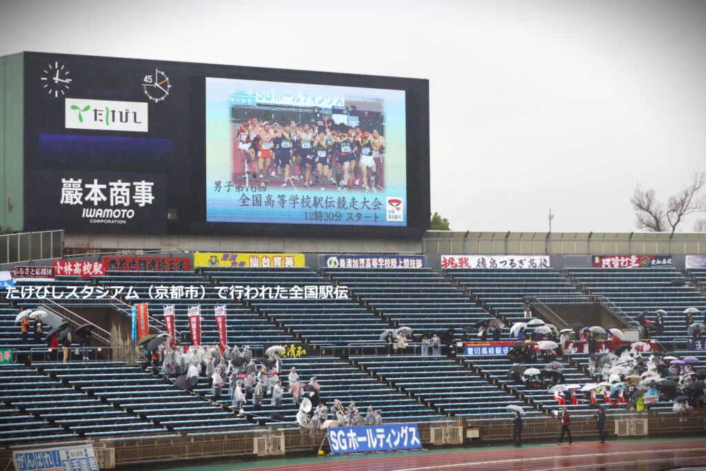 10年ぶり6回目の全国駅伝出場を果たした陸上部。当日の京都市内は雨が降りしきり、各選手にとっても厳しい条件となる中、12時30分に1区の鈴木富太選手(3年)が力強く出走。最終7区の大堀優雅選手(3年)までの7選手が各区間で力走を見せ、最終的には44位という結果となりました。