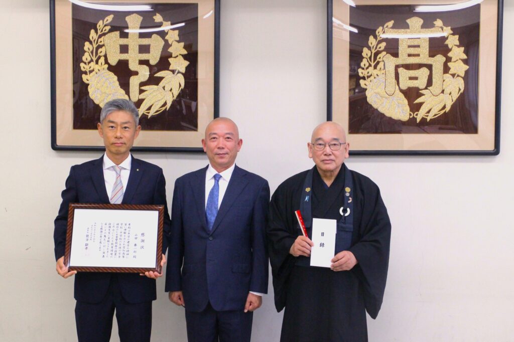 この度、山田泰一郎様(高校PTA幹事・前中学PTA会長)より雷探知機(雷センサー)を寄贈いただきました。10月14日(火)に贈呈式を執り行い、龍谷顕孝愛知学院理事長より感謝状が手渡されました。